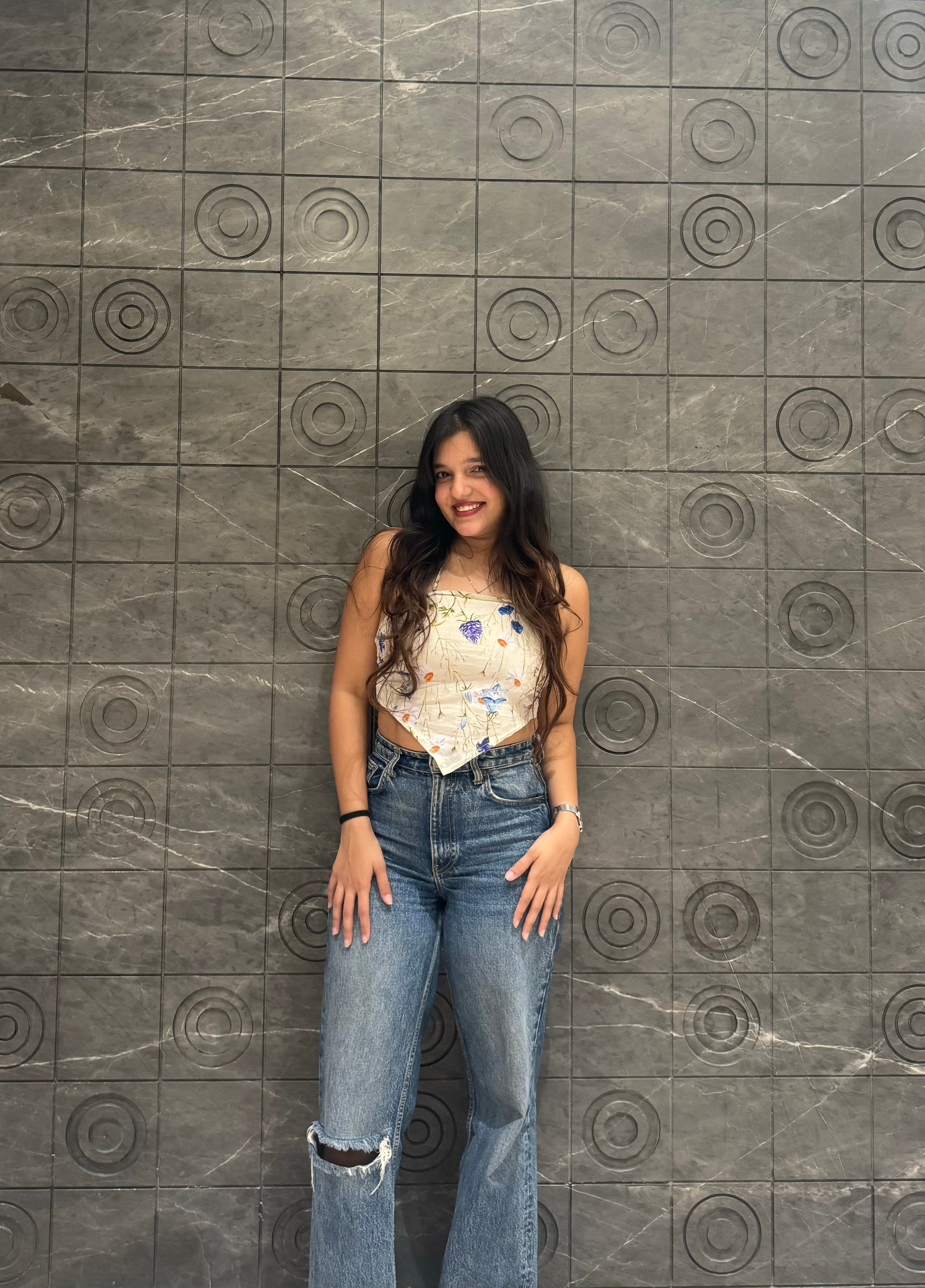 Soft, elegant, and timeless. Serenity is a beautifully crafted scarf top in a calming cream base, adorned with delicate blue and purple flowers that evoke a sense of peace and nature. The lightweight fabric drapes beautifully and features adjustable ties at the neck and back for a personalized fit. Whether you're dressing up for a casual outing or enjoying a relaxed day, Serenity brings a graceful, floral touch to your look.