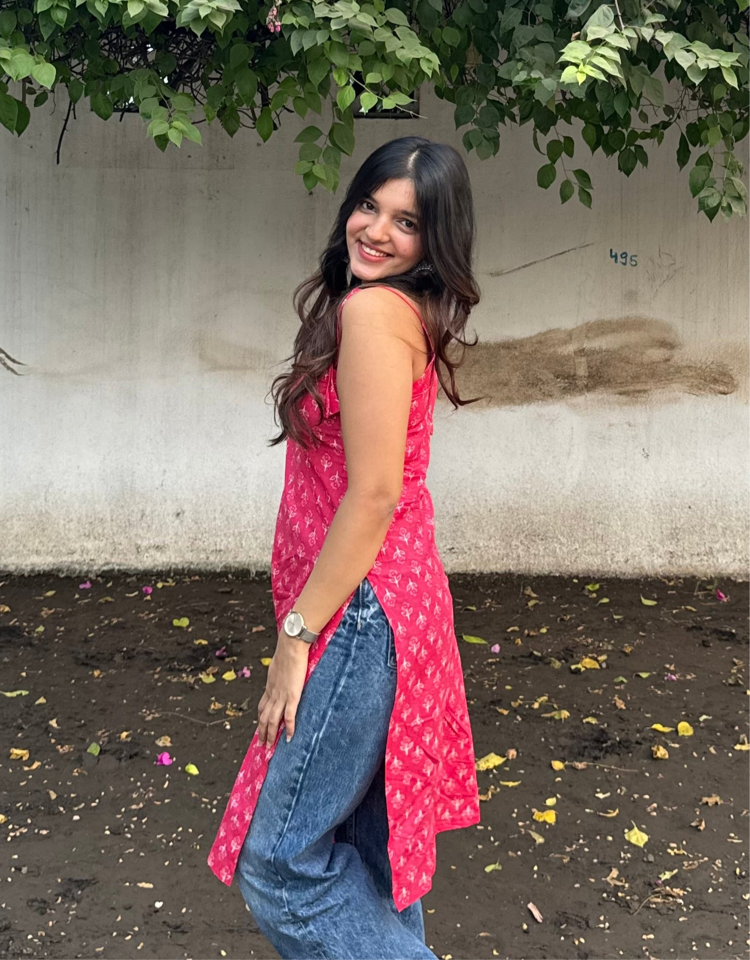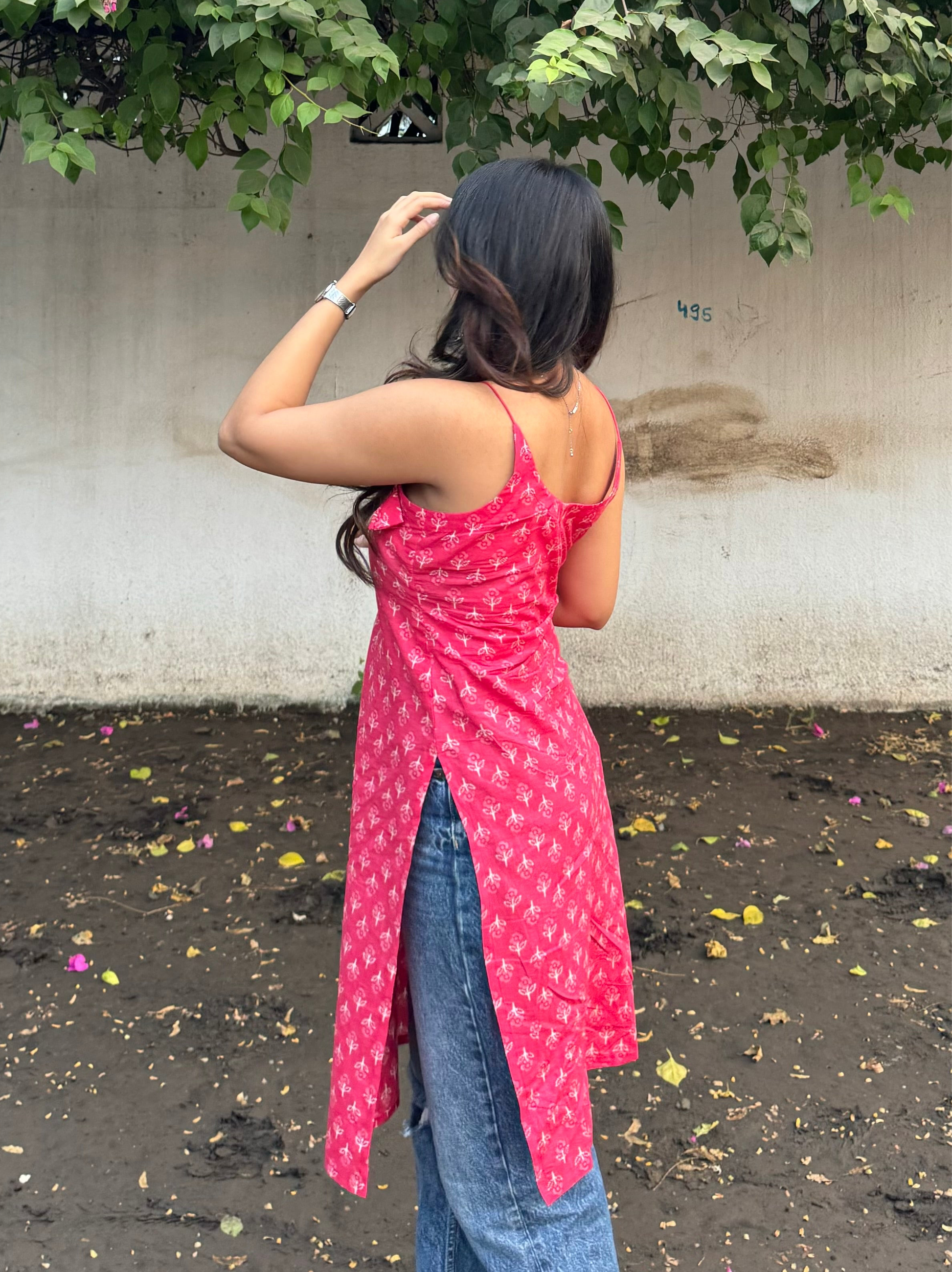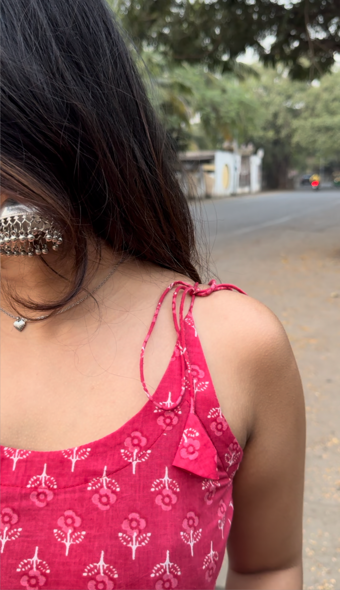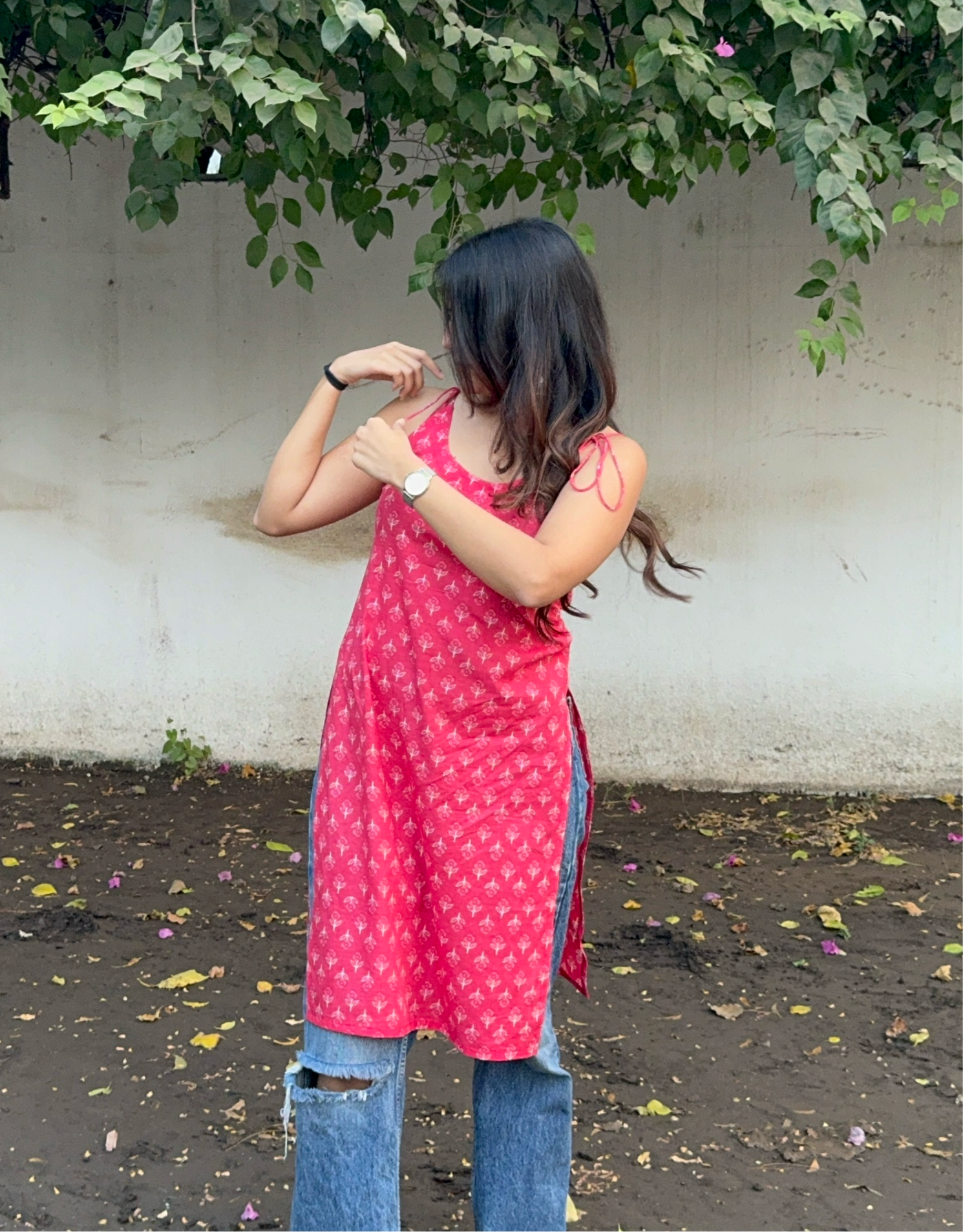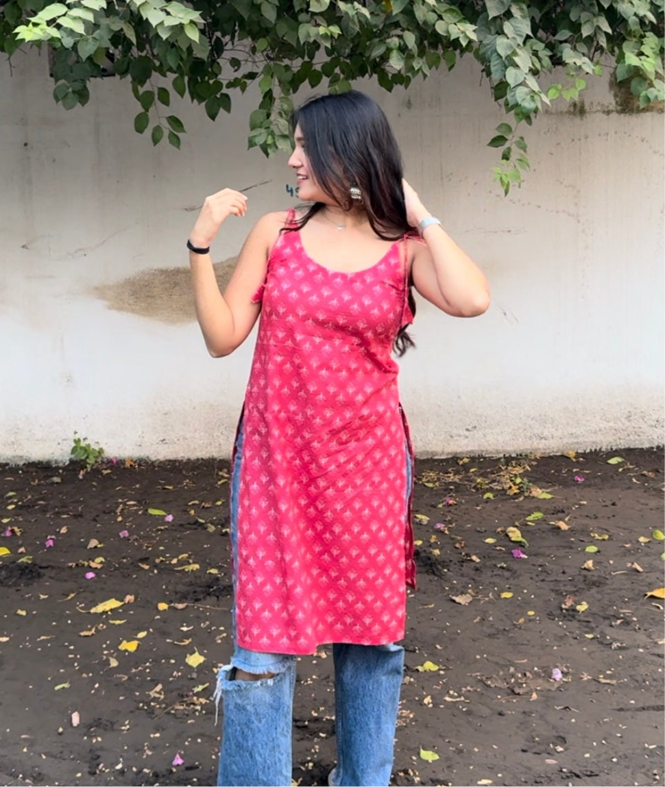 A timeless kurti adorned with charming tie straps, adding a touch of elegance and versatility to the traditional silhouette.